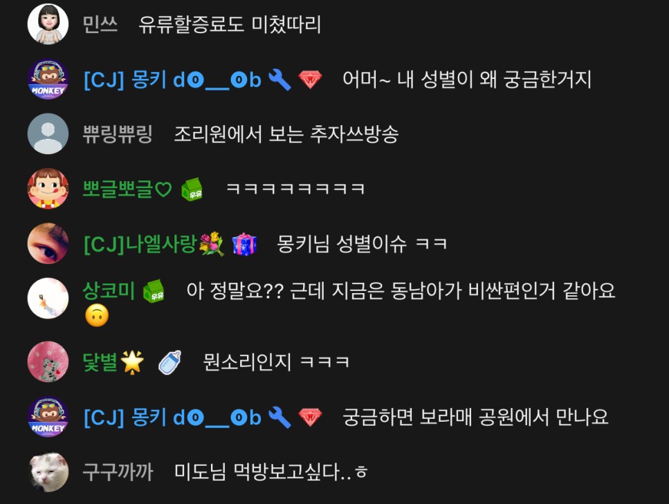 예전에 ㅊ랑 ㅎㅇ이랑 방송에서 몽ㅋ가 뭐 보내줬는데