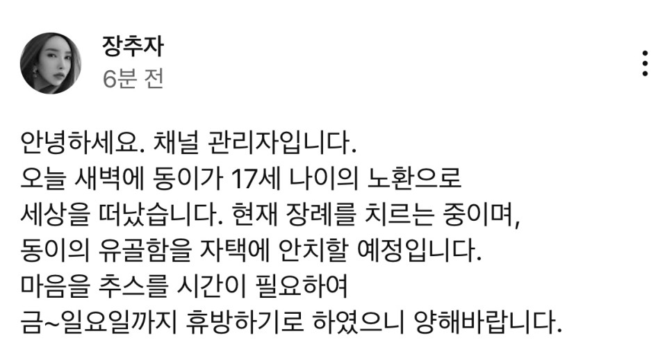 동이의 명복을 빕니다 ㅠㅠ