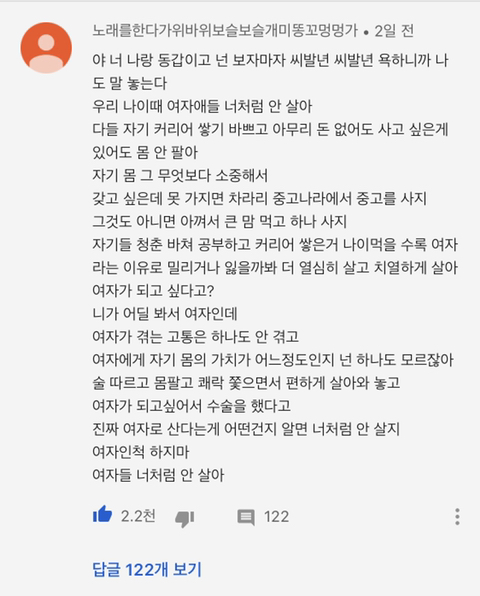 밤엔 보도뛰고 아무렇지 않은척 낮일하는 기집년들 천지임