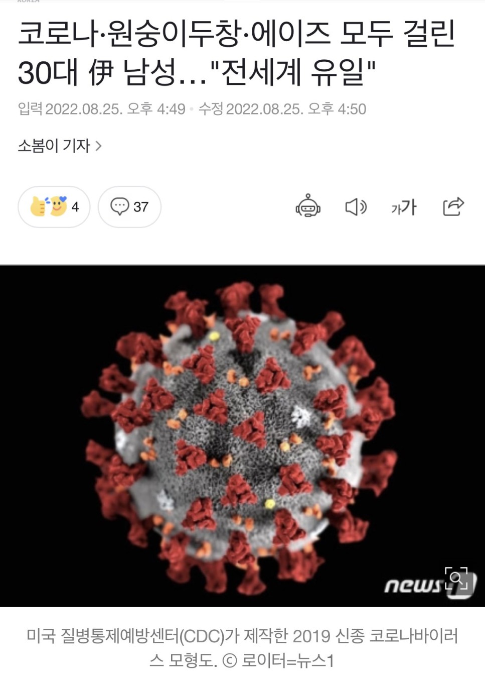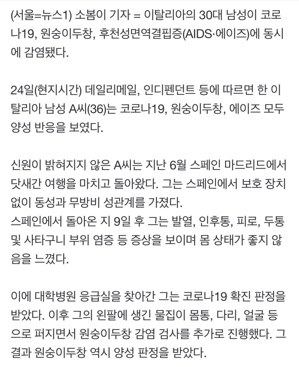 코로나 원숭이두창 에이즈 동시에 다 걸린 유일한 사람 발생