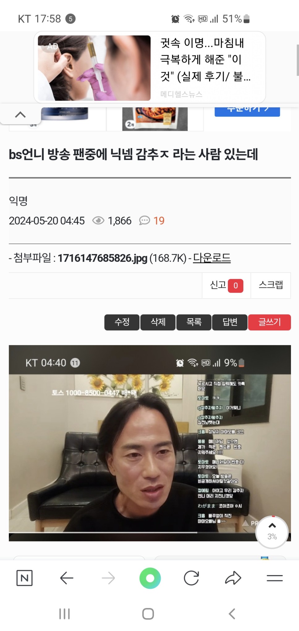 방송할때부터 댓글 잠군거보고 인성알아봤지