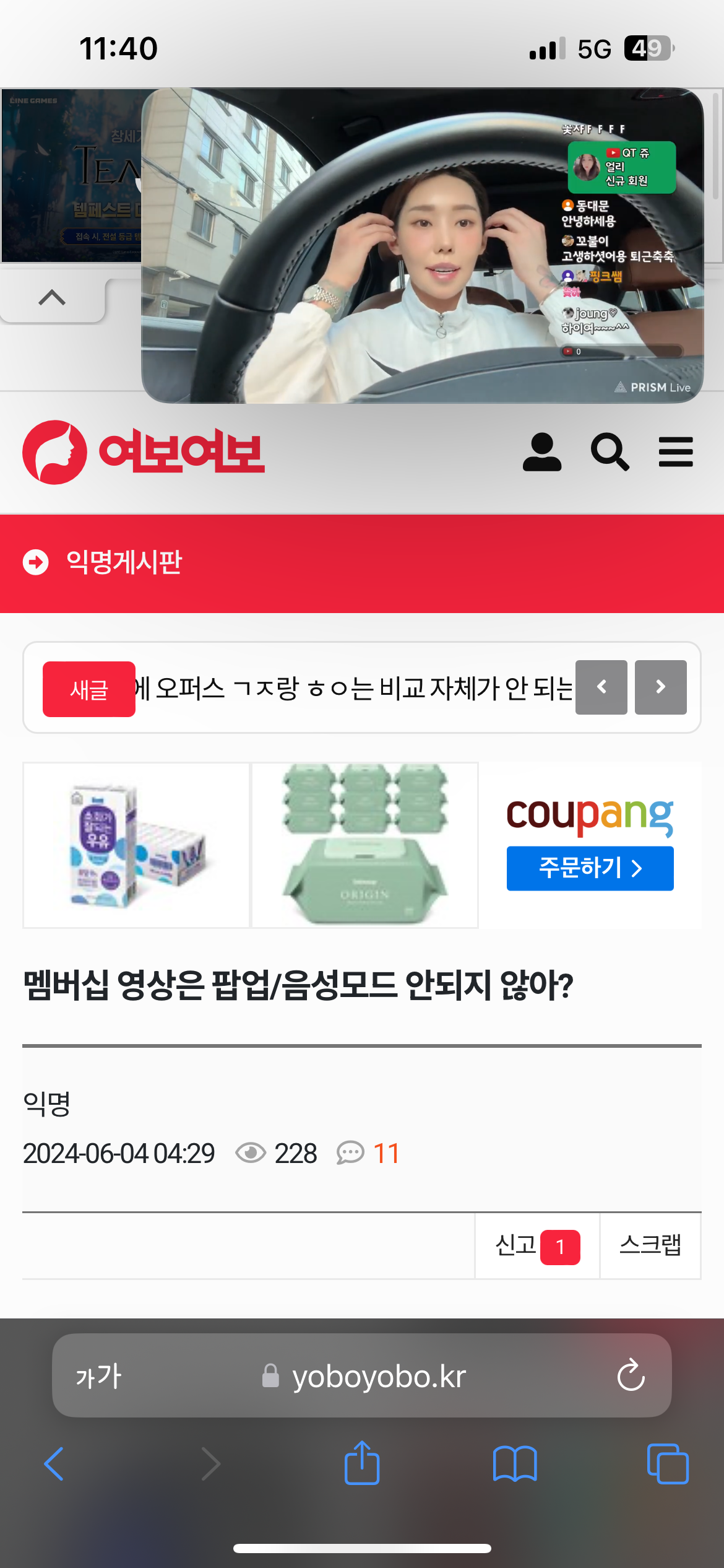 멤버십 영상은 팝업/음성모드 안되지 않아?