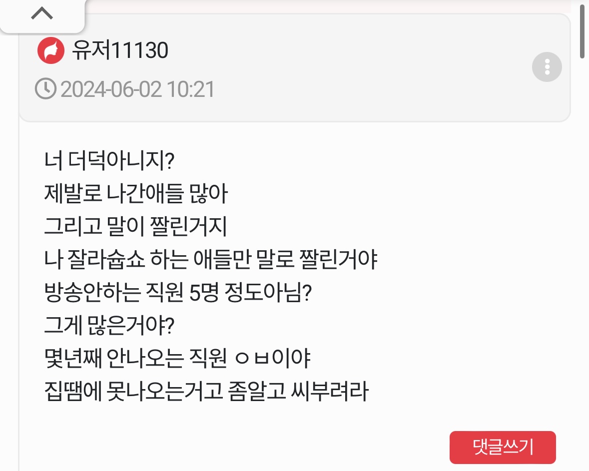 니 인성이 이래서 이짤린거야 ㅋㅋㅋ