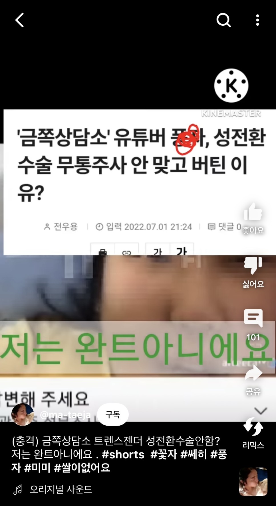 기사랑 공중파에서는 수술한척 해놓구, 트젠 합방 방송에서는 수술 안했다고해서 ㅋㅋㅋ 일반인들한테 욕 뒤집어지게 먹었었네