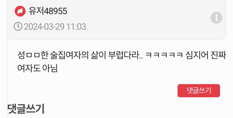 진짜여자 아니라고 말하는 뽄새보니 지들이 줌마였네 ㅋㅋㅋ