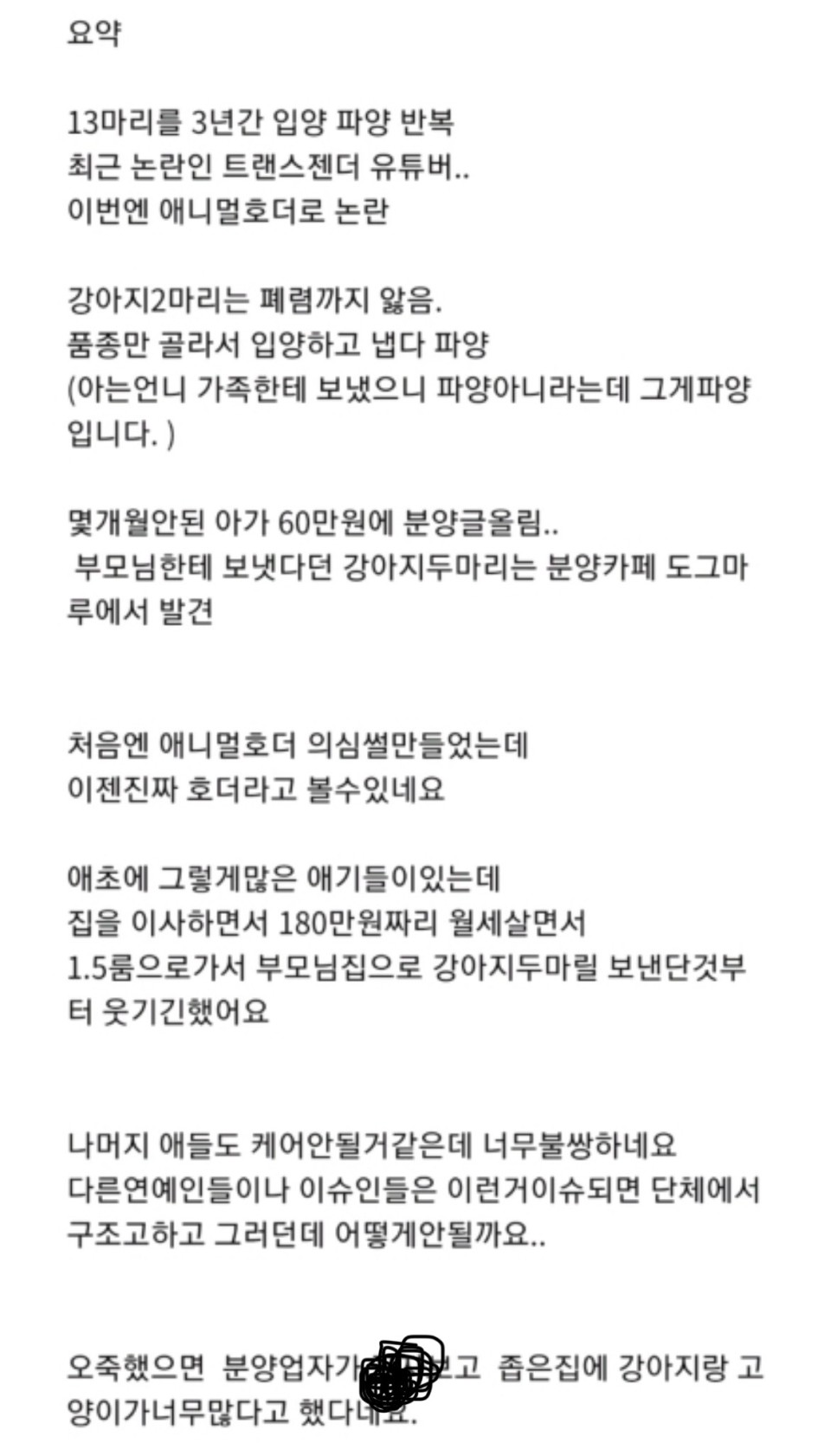 논란 있고도 또 입양 파양 번복한? 걸로? 추청되기윤?
