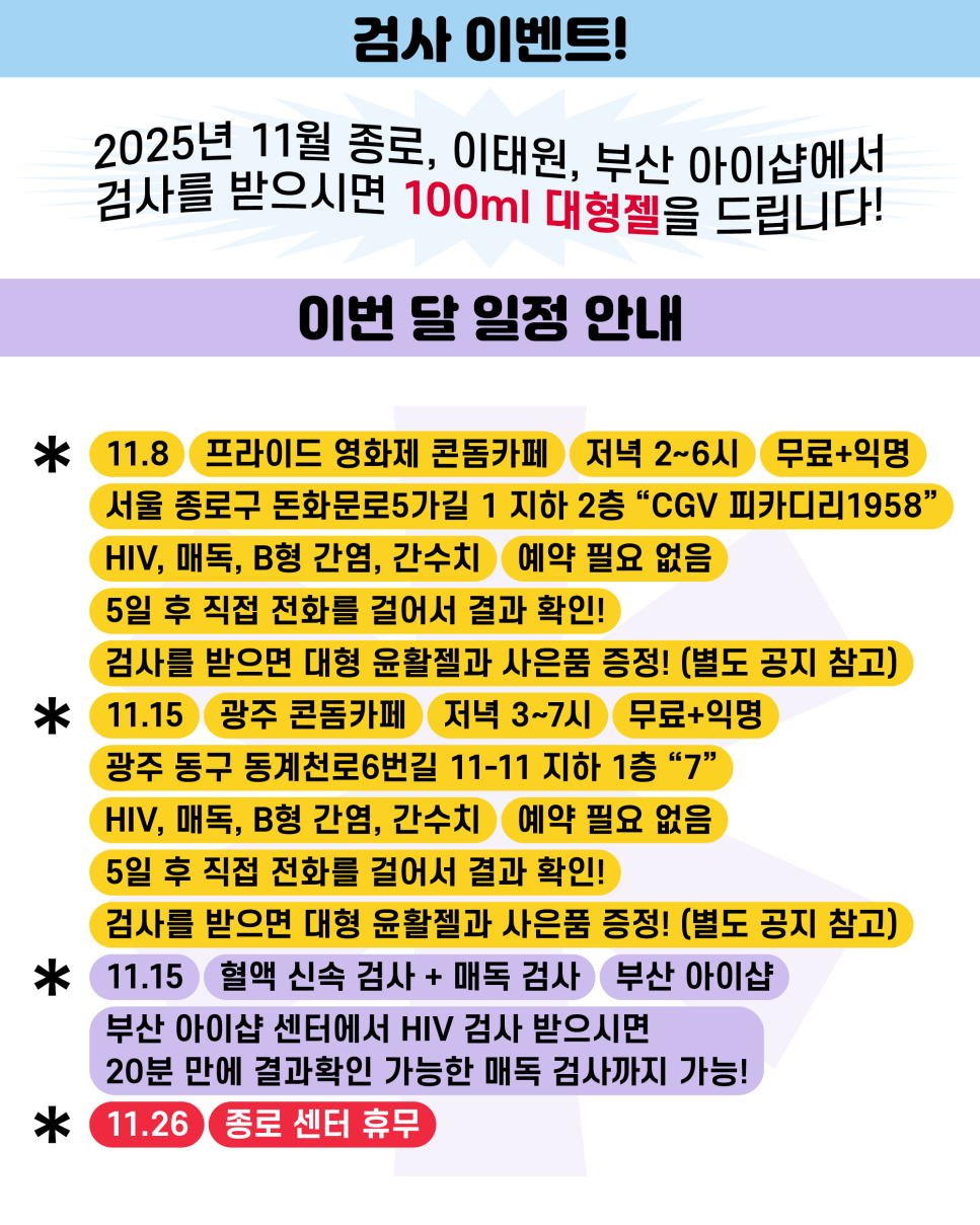 2025년 11월 iSHAP 무료 에이즈/종합성병 검사일정