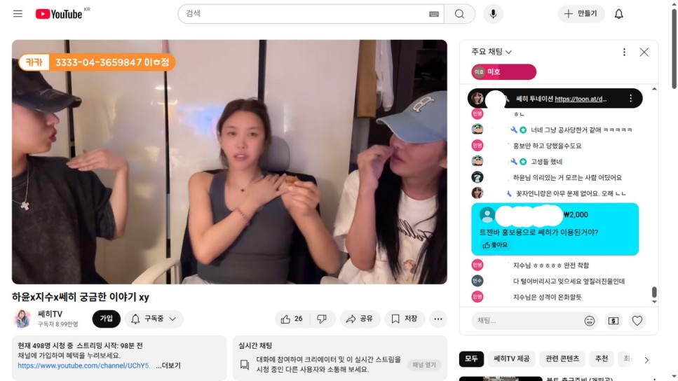 쎄히는 저런 방송을 해서는 안됨.. 한마디로 윈**아와 다를 게 없어. 자기가 있던 가게를 유투브 방송으로 망하라며 저러는 건
