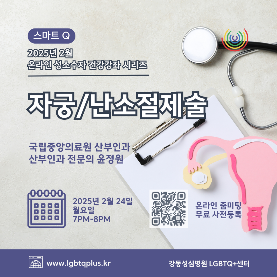 강동성심병원 LGBTQ+센터에서는 매월 마지막 주 월요일에 온라인 성소수자 건강강좌 [스마트Q]를 진행하고 있습니다.