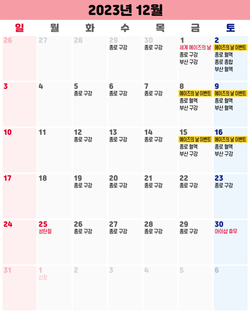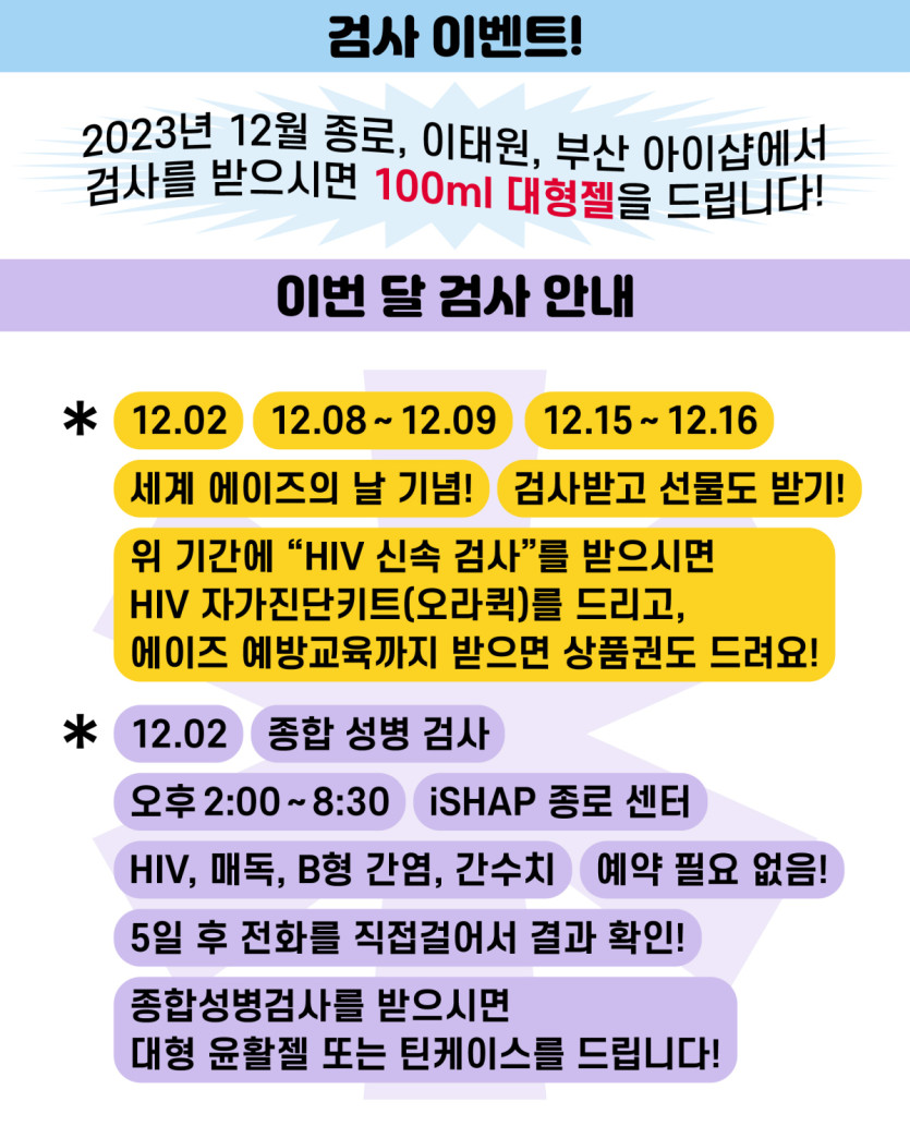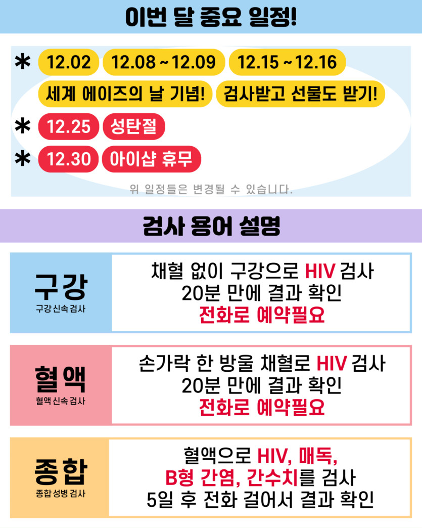 12월 iSHAP 에이즈/종합성병 검사일정