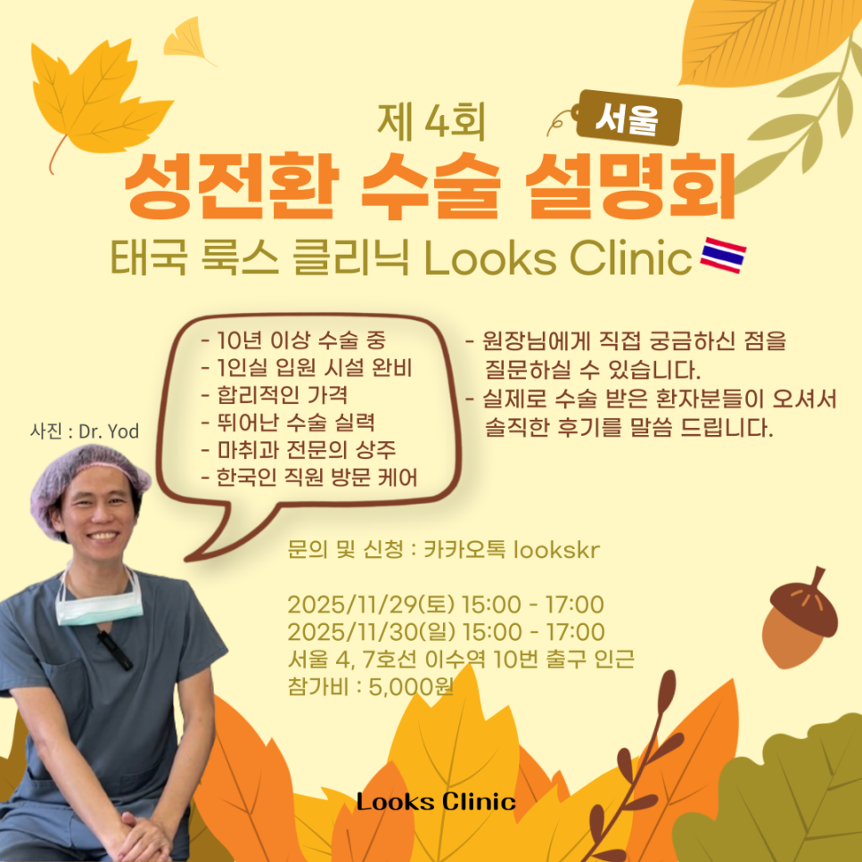 [룩스 클리닉] 태국 성전환 수술 병원 설명회 안내(서울)