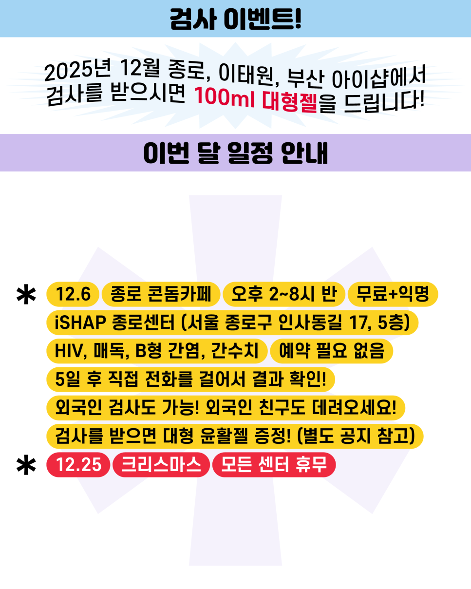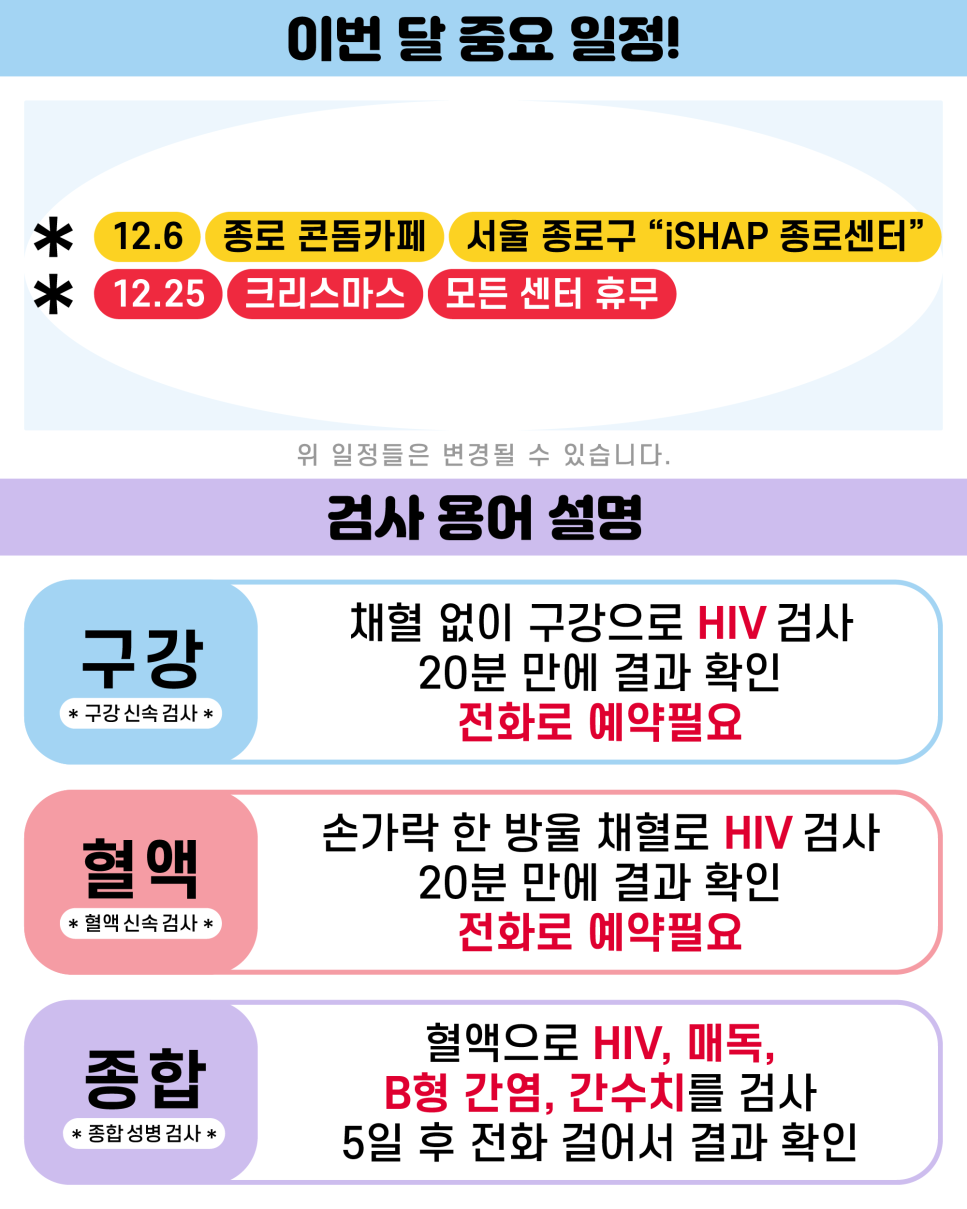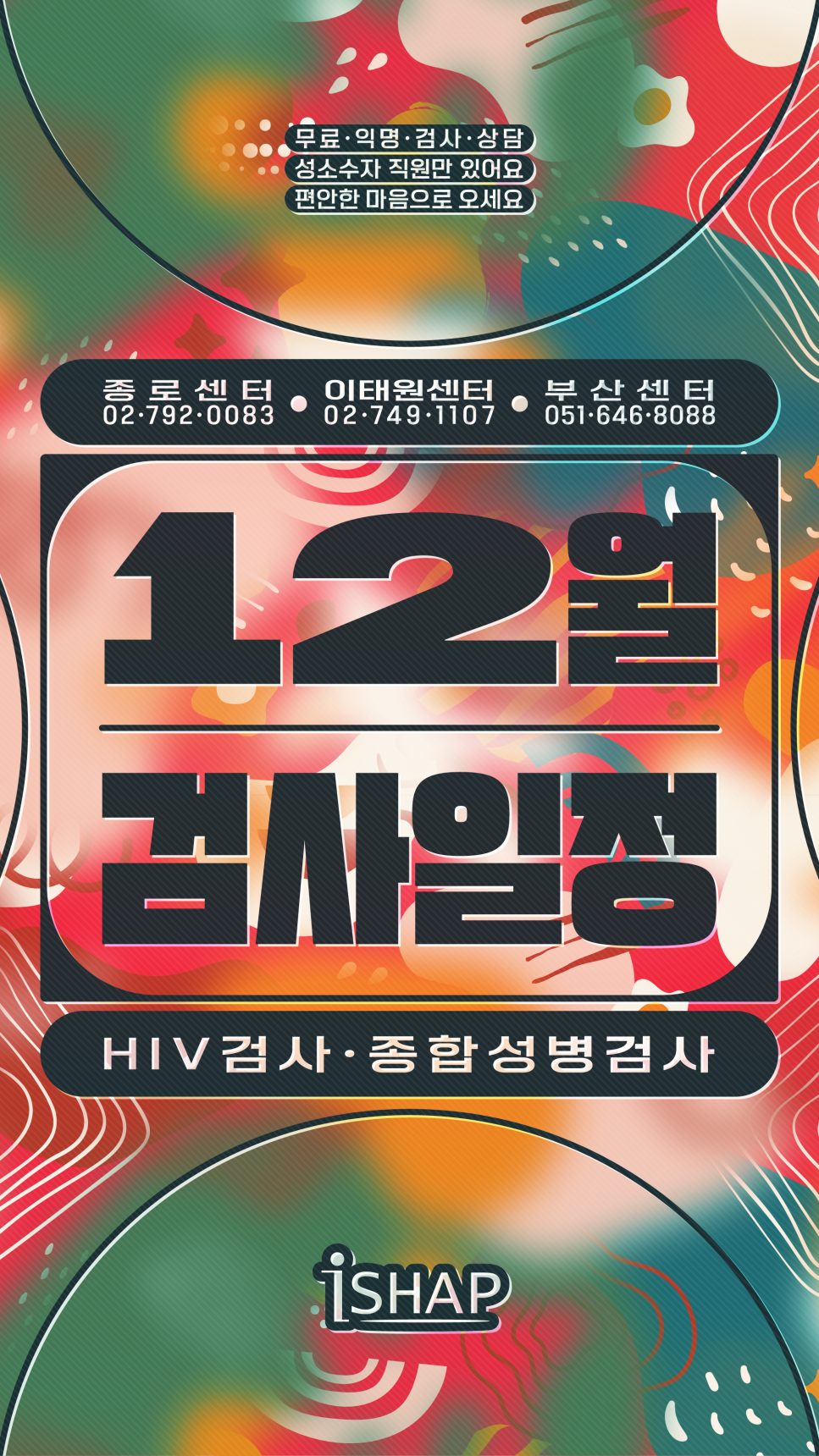 2025년 12월 iSHAP 무료 에이즈/종합성병 검사일정
