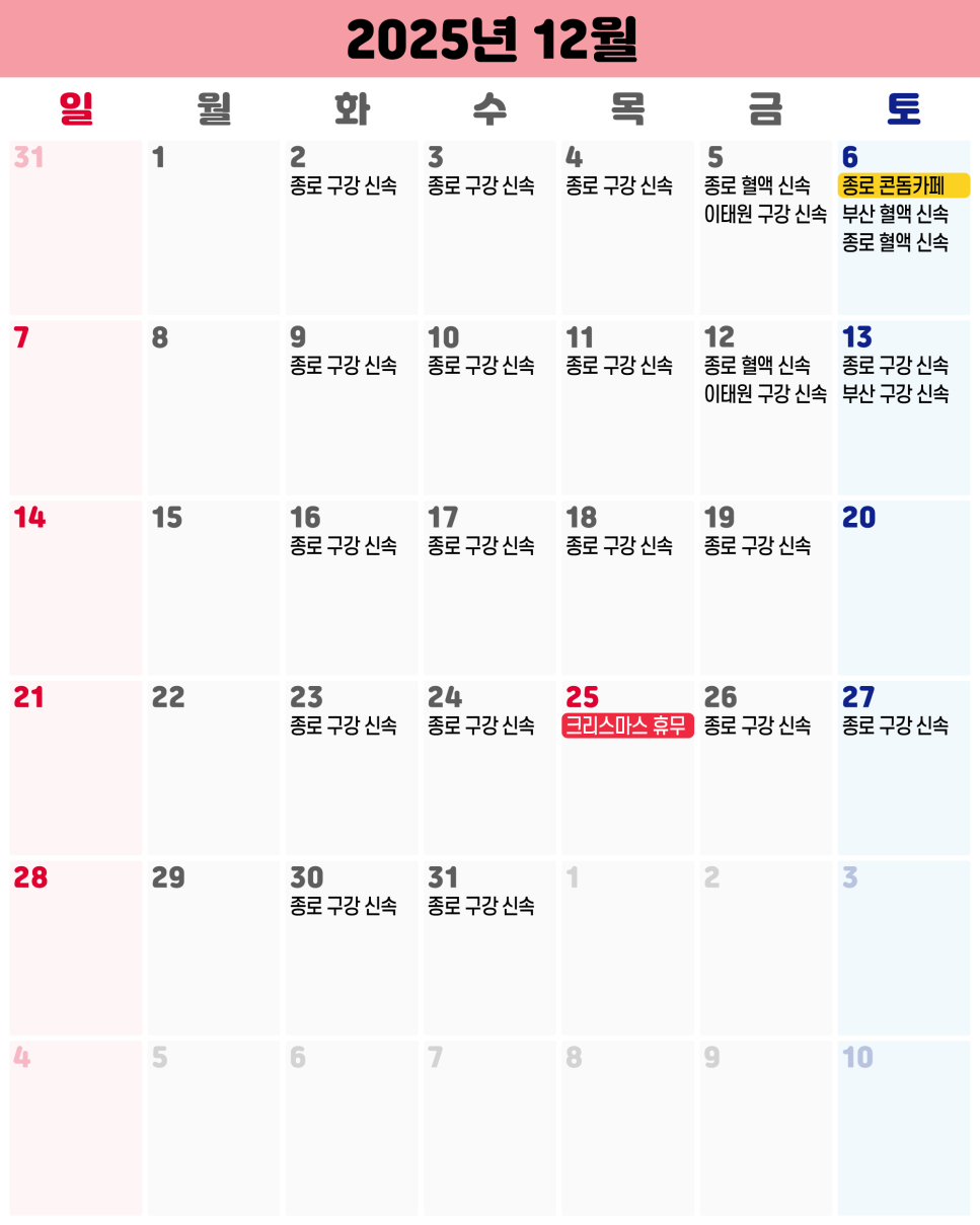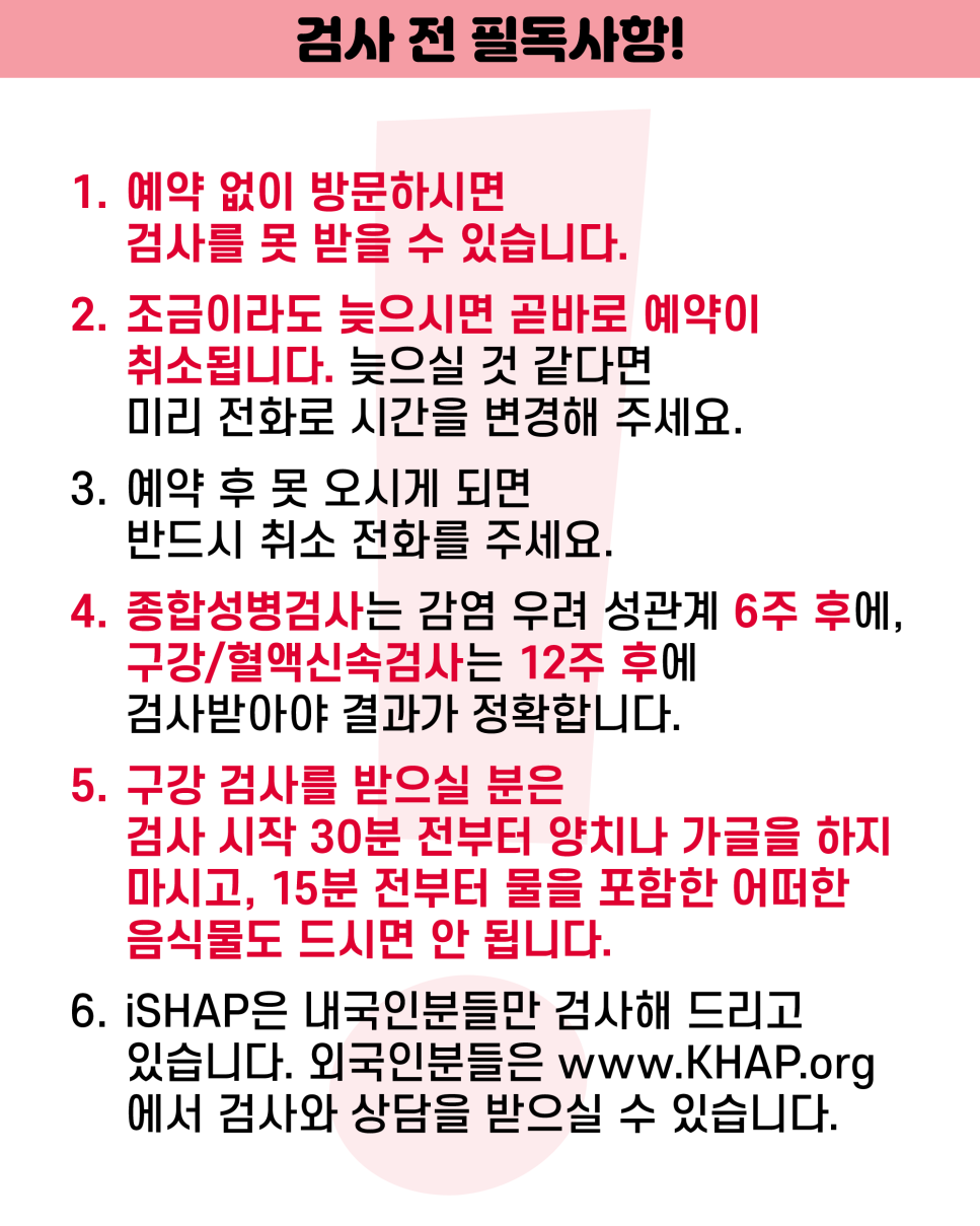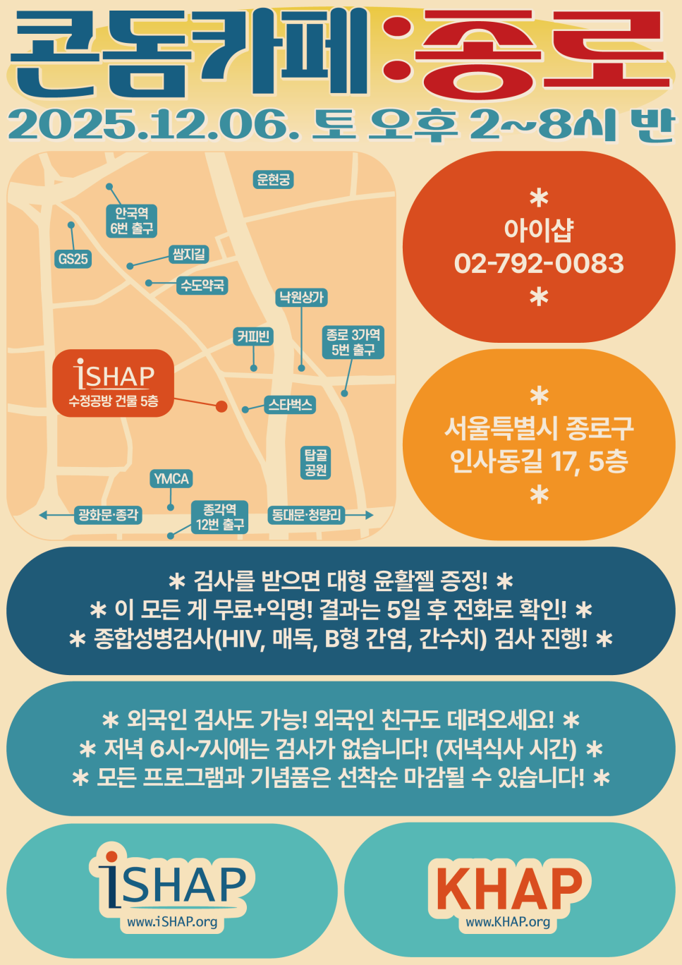 2025년 12월 iSHAP 무료 에이즈/종합성병 검사일정