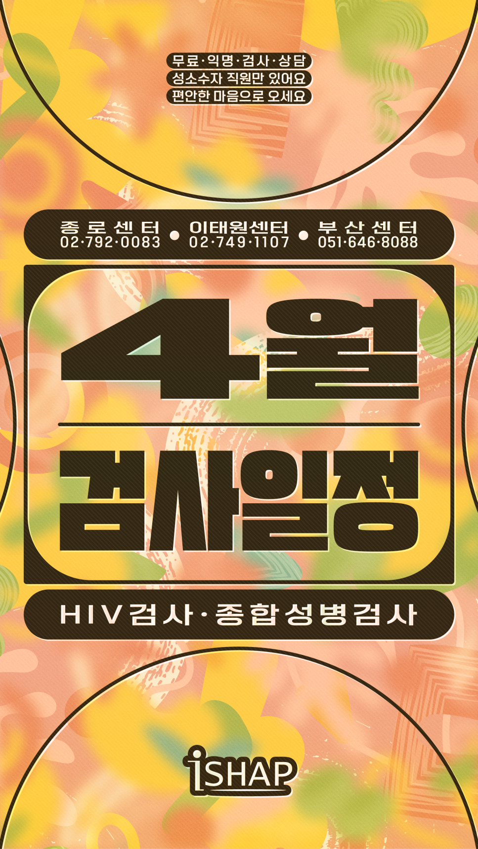 2026년 4월 iSHAP 무료 에이즈/종합성병 검사일정