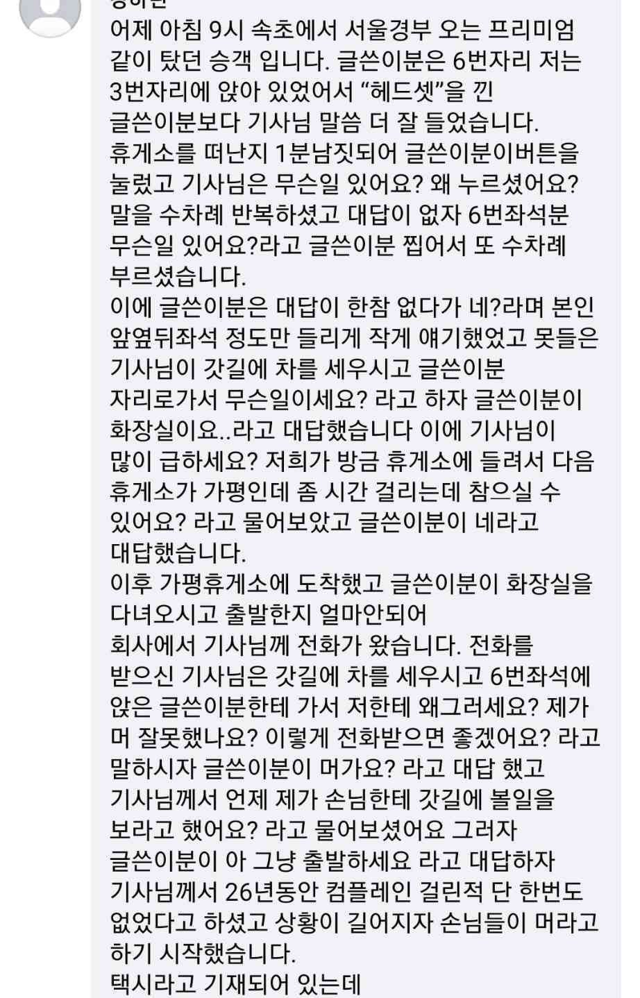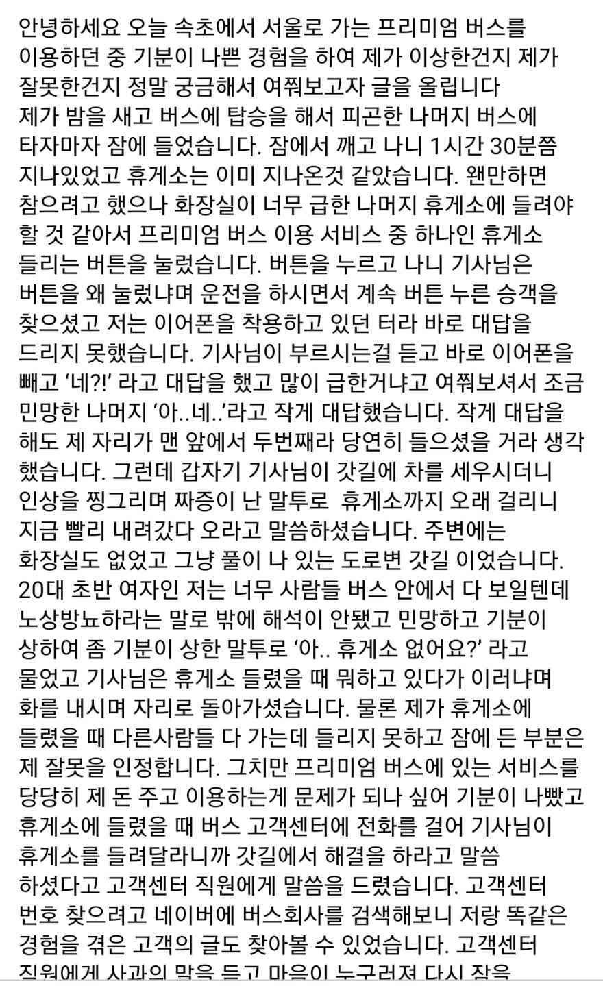 2. 기사가 노발대발하며 휴게소 들럿을때 뭐햇냐고하면서 갓길에 차세우고 나가서 오줌 싸고오라함