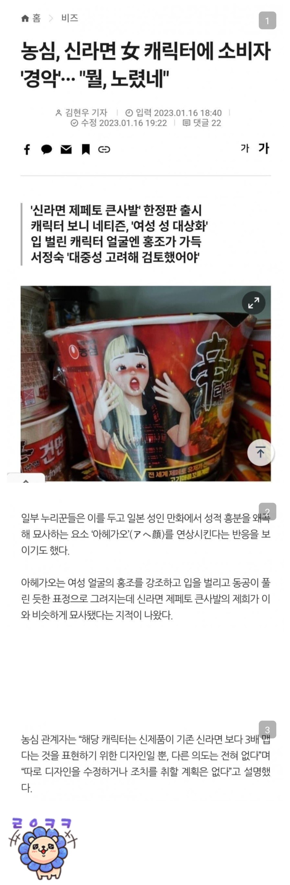 신라면 여 캐릭터 논란... 농심 반응