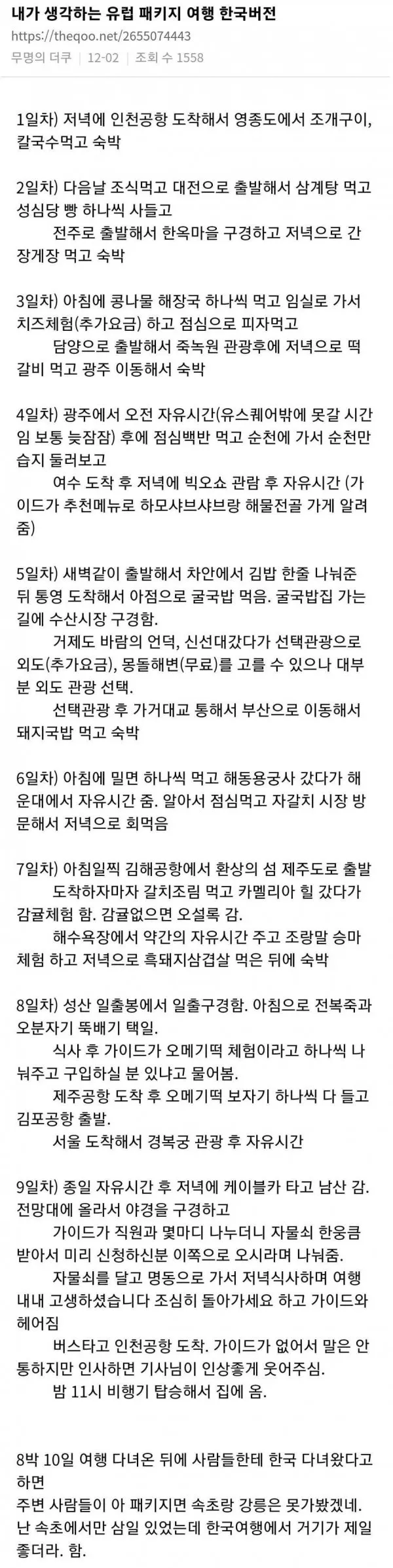 유럽 패키지여행 한국버전