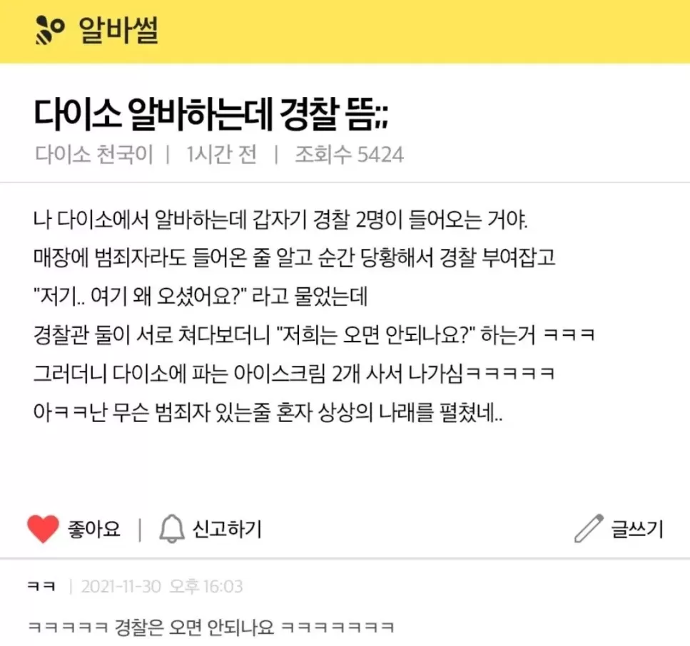 다이소 알바하는데 경찰뜸jpg