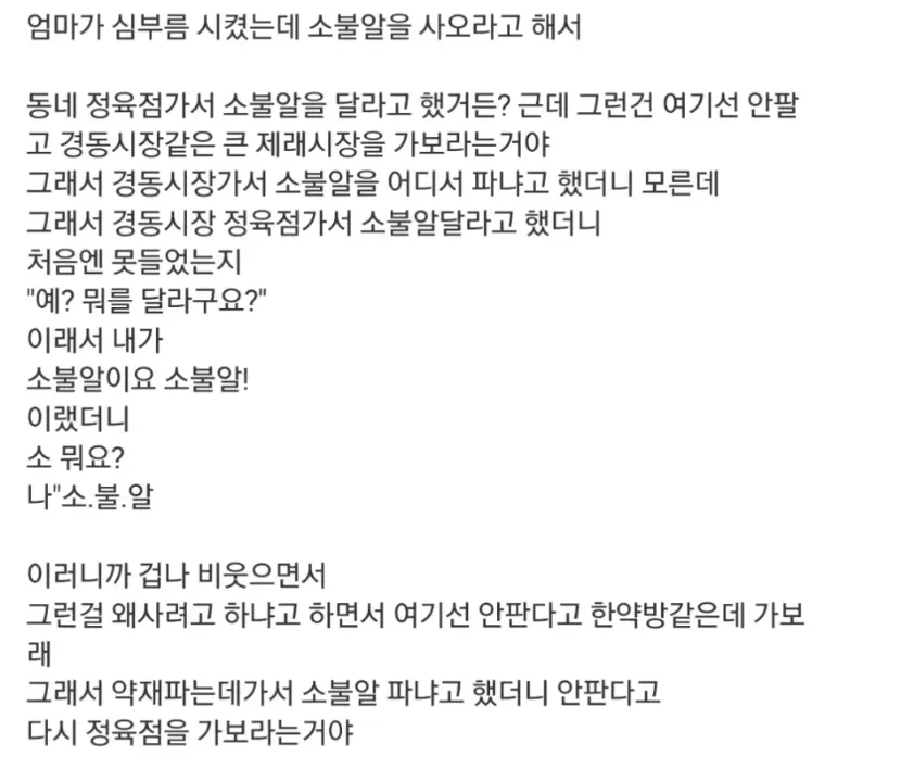 엄마가 심부름으로 사오라고 시킨 소부랄