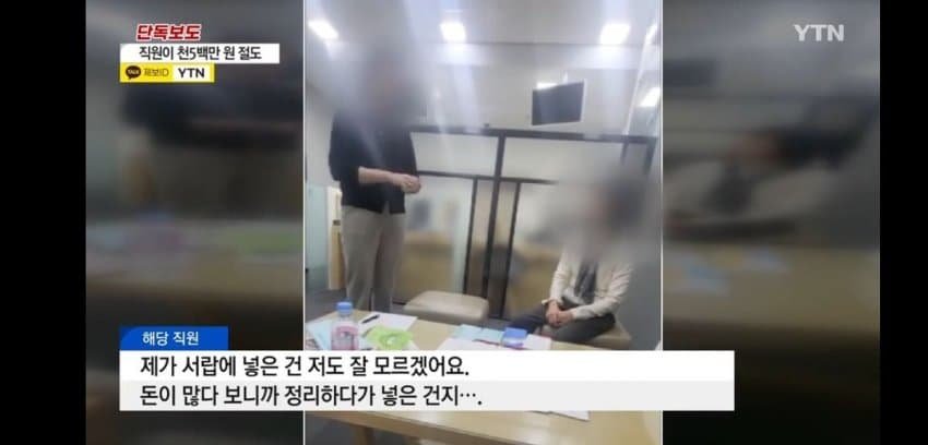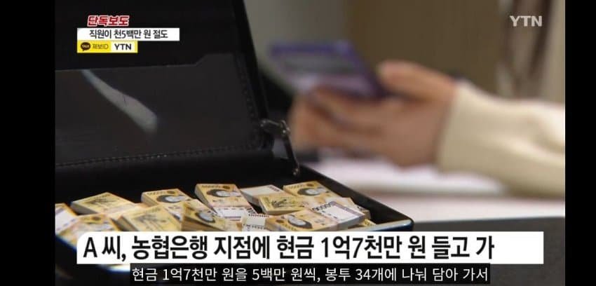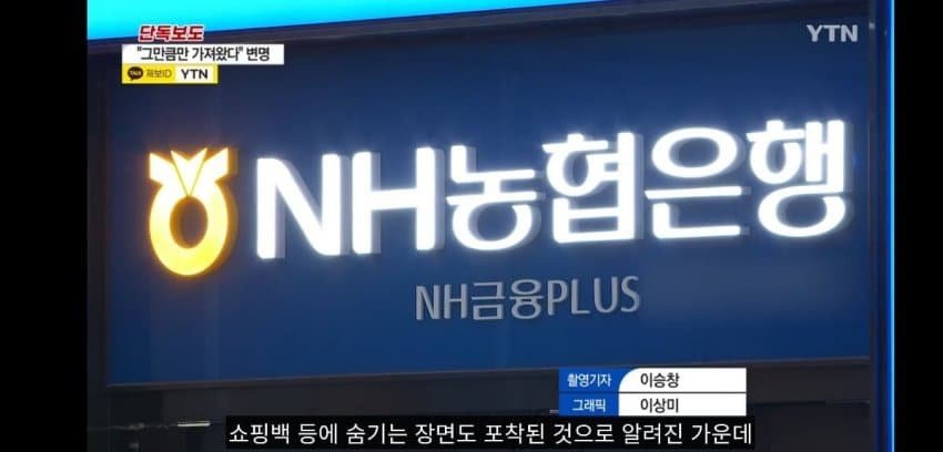 농협은행 직원 고객 보는 앞에서 돈 훔치다 적발