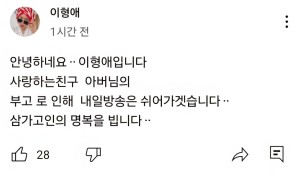 형애언니 절친 아버님 돌아가셨대